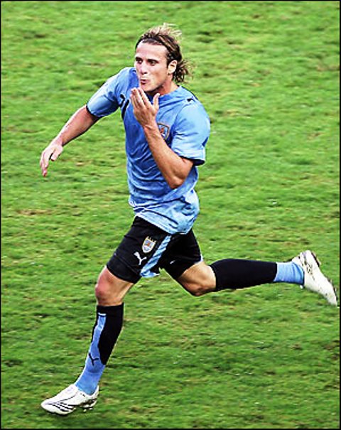 Diego Forlán, atacante de 31 anos, foi ainda eleito o melhor jogador da partida por três vezes. O camisa 10 do Uruguai tem 69 jogos pela sua seleção, e 29 gols marcados.