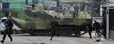 Rio, graças ao tráfico de drogas, à corrupção policial e as políticas equivocadas de vários governos lembra de alguma maneira o Iraque e o Afeganistão, que vivem eternamente em estado beligerante. Vai demorar muito tempo ainda para o brasileiro vê o Rio de Janeiro pacificado. A cidade, hoje, é manchete em todos os jornais do país e do exterior. E ninguém está tranquilo com um barril de pólvora dentro de casa.