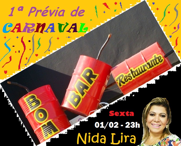A cantora Nida Lira, uma das maiores cantoras potiguares, retorna ao BOM BAR para animar a 1ª Prévia de Carnaval do BOM BAR”, nesta sexta-feira (01/02).