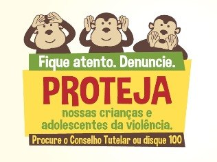 Com o lema “Não desvie o olhar, fique atento, denuncie”, a Campanha Nacional de Carnaval de Proteção à Criança e ao Adolescente terá filmes na TV, spots no rádio, camisetas, adesivos e outros materiais promocionais. O símbolo são três macaquinhos que se contrapõem ao tradicional “não ouço, não falo, não vejo”.