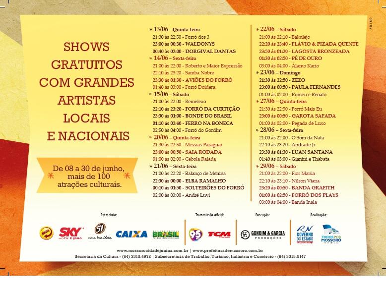 dia 28/06 – 6ª feira – O Som da Nata/Andrade Jr./LUAN SANTANA/Giannini & Thábata