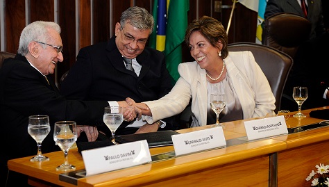 Nesta segunda-feira (27), a governadora Rosalba Ciarlini esteve presente na sessão solene realizada pela Assembleia Legislativa do RN, em homenagem ao senador da república, Garibaldi Alves, pai do Ministro da Previdência Social, Garibaldi Alves Filho. O momento teve o objetivo de agraciar o senador com a medalha do Mérito Legislativo José Augusto, a maior honraria do parlamento estadual.
