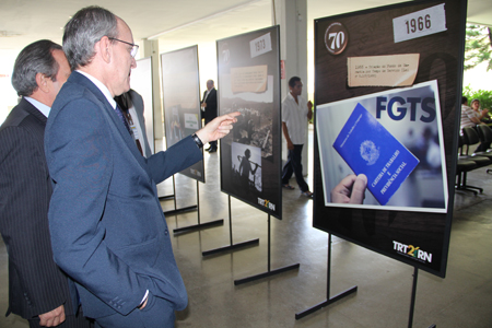 O TRT-RN também iniciou, nesta quarta-feira, mais uma homenagem aos 70 anos da CLT, com a abertura de uma exposição comemorativa, instalada no átrio das Varas do Trabalho de Natal.A mostra reúne edições históricas da Consolidação das Leis do Trabalho e painéis que recuperam, por meio de fotos e textos, a história do Direito e da Justiça do Trabalho no Rio Grande do Norte, no Brasil e no mundo.