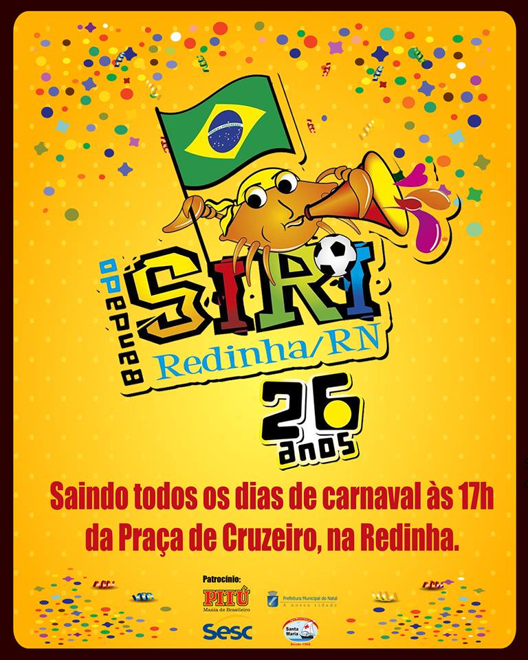 Fundada em 05 de Dezembro de 1988,(este ano completando 26 anos) a Banda do siri se tornou o ponto alto do carnaval da praia da Redinha, um dos melhores carnavais de Natal, sua proposta consiste em levar o autentico carnaval do frevo a veranistas e moradores durante as tardes e noites dos quatro dias do reinado de momo, sem cordas e cordões, resgatando a liberdade e a irreverência do nosso povo com sua orquestra de metais este ano comandada pelo maestro Paulo Henrique com 50 músicos, seus bonecos gigantes e estandartes coloridos contagiando milhares de foliões pelas ruas becos e vielas da Praia da Redinha, onde se tornou a maior atração do carnaval. “Somos talvez o único bloco carnavlesco do estado que sai os quatro dias de folia de momo. É muito trabalhoso, porém gratificante pela alegria estampada nos rostos das pessoas por onde a nossa banda passa” comentou Fábio Henrique Diretor e um dos fundadores da a banda do siri, ao lado de João Alfredo ( in Mememoriam) e Helio Rocha, que também continua dirigindo a banda com toda força e alegria