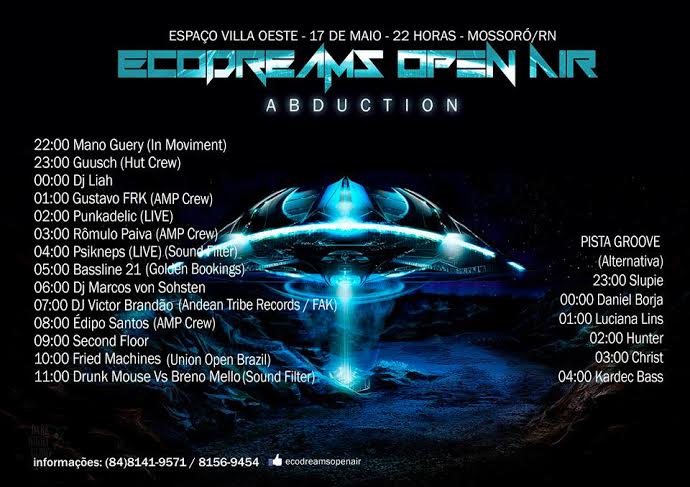 No próximo sábado, dia 17 de maio, acontece no Espaço Villa do Hotel VillaOeste a Ecodreams Open Air. O festival de música eletrônica, que contará com a participação de vários DJs, tem início às 22h e segue até às 11h do domingo, dia 18. Ainda no sábado o Hotel estará realizando no Salão Ilha o baile de 15 anos da jovem Vitória Carlos, com a produção da Master Produções e Eventos. Serão dois eventos distintos acontecendo simultaneamente que demonstram a grande capacidade do VillaOeste na realização de eventos.