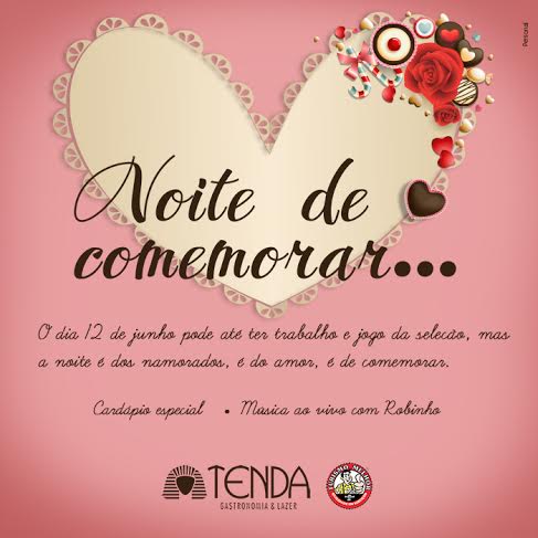 Muito romantismo aliado a uma excelente gastronomia. Essa é a receita do Restaurante Tenda para a noite do próximo dia 12 de junho. Um cardápio especial foi elaborado para o jantar do Dia dos Namorados, que contará também com a animação do cantor Robinho e um repertório pensado nos apaixonados.