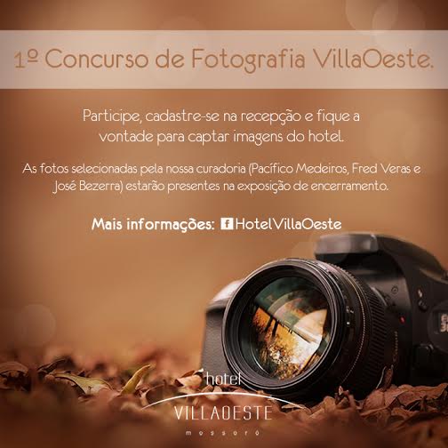 O 1º Concurso de Fotografia VillaOeste, promovido pelo Hotel VillaOeste, em Mossoró-RN, está aberto para a participação de fotógrafos profissionais ou amadores com idade de a partir de 18 anos. As inscrições tiveram início nessa quinta-feira, dia 21, e seguem até o próximo dia 20 de setembro na recepção do hotel.