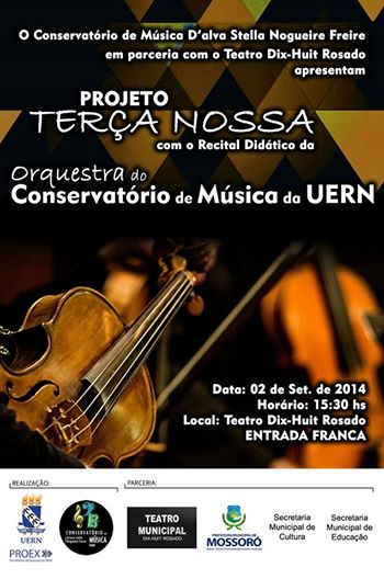 O Conservatório de Música D’alva Stella Nogueira Freire, da Pró-Reitoria de Extensão/UERN, estará realizando em parceria com o Teatro Dix-Huit Rosado um Concerto Didádico com a Orquestra do Conservatório, com a regência do Professor e violinista Rony Sanderson.