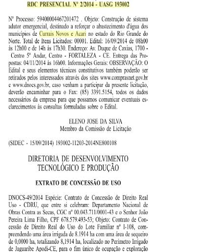“Eu ajudei, mas a vitória foi do povo de Currais Novos que se mobilizou”. Com essas palavras, o candidato do PMDB ao Governo do Estado, Henrique Alves, comemorou a publicação, nesta terça-feira (16), do edital de licitação para implantar a adutora de engate rápido que abastecerá os municípios de Currais Novos e Acari. O edital foi publicado no Diário Oficial da União.