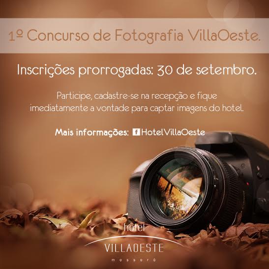 As inscrições para o 1º Concurso de Fotografia do VillaOeste foram prorrogadas até a próxima terça-feira, dia 30 de setembro. Com o tema “Sua percepção do VillaOeste” o participante, através da fotografia, deverá mostrar como ele percebe o hotel, seja nos detalhes do ambiente, arquitetura, área verde, etc.