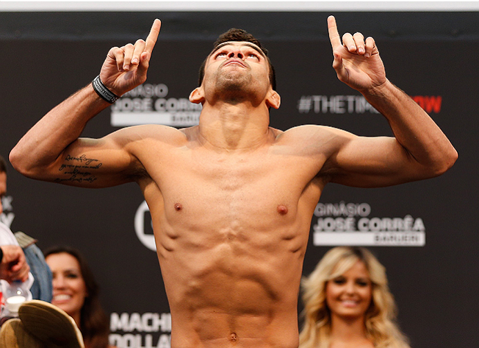 Renan Barão passa pela balança e volta ao octógono neste sábado.