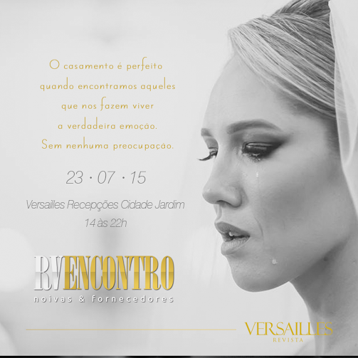 Nesta quinta-feira (23), no Versailles Recepções Cidade Jardim, das 14h às 22h, acontece o RV Encontro – Noivas & Fornecedores. O evento é direcionado as noivas que terão a oportunidade de resolver tudo em um único dia, tendo a disposição 40 fornecedores que apresentarão o melhor para festas de casamentos desde joias, salões de beleza específicos na preparação de noivas, clínicas de estética à buffet, fotografia, filmagem, iluminação, música, cerimonial, ornamentação, vestidos e muito mais.No RV Encontro, os fornecedores darão descontos e vantagens únicas para as noivas com surpresas e degustações em carrinhos gourmet, além do desfile exclusivo da coleção de Valéria Gurgel e encerramento com o grupo Harmonium in concert.