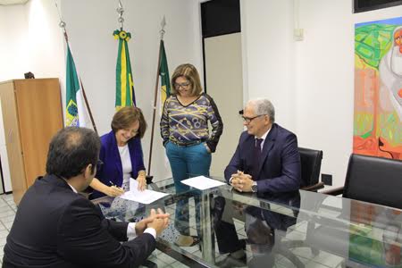 A presidente do Tribunal Regional do Trabalho do Rio Grande do Norte, desembargadora Joseane Dantas dos Santos, assinou Termo de Cooperação Técnica, na tarde de hoje (03), com a Caixa Econômica Federal e seis prefeituras do Estado para envio de notificações via PJe.