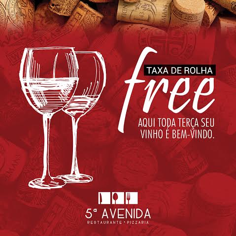 De acordo com esse sistema o cliente pode levar o vinho de sua preferência para ser consumido no 5ª Avenida, sem pagar a taxa conhecida como “rolha” e pagando somente pelo que consumir. Com o sistema “rolha free” os clientes poderão sugerir e apresentar novos rótulos ao restaurante além de trocar informações sobre vinhos e harmonização. Ótimo para quem conhece ou quer conhecer o saboroso e inebriante mundo da enogastronomia.