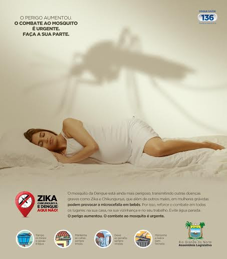 Os textos lembram dados da epidemia que está colocando a vida de muita gente em risco e em mulheres grávidas pode provocar a microcefalia em bebês. Os anúncios da campanha da Assembleia Legislativa lembram ainda cuidados básicos que a população deve ter como não deixar água parada em casa e em locais expostos. Com o tema “O Perigo Aumentou”, a campanha pretende alertar a população potiguar sobre os riscos da doença. “O combate ao mosquito transmissor da dengue, zika e chikungunya é urgente. Faremos campanha junto ao Governo do Estado, Prefeitura e Ministério da Saúde para proteger a população. Juntos, com certeza, somos mais fortes”, argumenta Ezequiel.