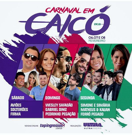 Considerado o 3º maior carnaval do Nordeste, o Carnaval de Caicó terá atrações nacionais para a sua edição de 2016 que acontecerá no mês de fevereiro atraindo um público de diversos estados brasileiros.Como fazemos todos os anos, trazendo as atrações dos principais carnavais do estado e da região, veja e confira a programação do carnaval privado de Caicó/RN.