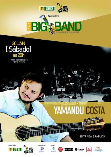 Após alguns anos, volta a Natal como convidado especial da SESI Big Band, um dos maiores talentos do violão, Yamandu Costa. A apresentação é gratuita e acontece no dia 30 de janeiro na Praça Ecológica de Ponta Negra, a partir das 20h. O show de Yamandu junto com a SESI Big Band traz no repertório músicas e arranjos que passeiam pelo choro, jazz, samba, baião e o som cubano. Violonista e compositor, Yamandu Costa é referência mundial na interpretação da música genuinamente brasileira, não se enquadra a nenhuma corrente musical. É um artista que mistura todos os estilos e cria interpretações de personalidade única acompanhada de seu violão de sete cordas. Yamandu já percorreu os principais palcos do Brasil e conquistou os mais importantes prêmios da música brasileira.