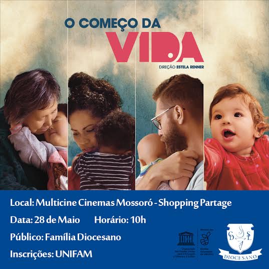 O Colégio Diocesano Santa Luzia realizará uma sessão especial de cinema, com a exibição do filme “O Começo da Vida”, no dia 28 de maio, às 10h, no Multicine do Partage Shopping Mossoró. A sessão será destinada às famílias do colégio, como forma de convidá-las a refletirem, enquanto sociedade, sobre a importância dos primeiros anos de vida na formação do ser humano.