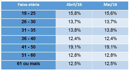 Um estudo da Serasa Experian revela que 59.470.359 pessoas estavam inadimplentes no país em maio de 2016, cerca de 1,3 milhão a menos na comparação com abril do mesmo ano, quando o índice bateu recorde histórico de consumidores com dívidas atrasadas (60.730.403). É a primeira queda desde dezembro de 2014. O valor total das dívidas atrasadas verificadas em maio/16 soma R$ 264,2 bilhões. Os jovens de 18 a 25 anos, que ocupam o segundo lugar no ranking de brasileiros negativados com 9,3 milhões de pessoas em maio/16, foram os que mais se esforçaram para pagar o que deviam (15,8% em abril x 15,6% em maio de 2016).