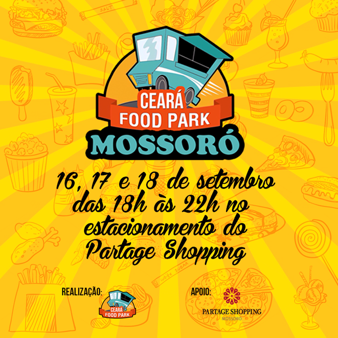 Está de volta ao Partage Shopping Mossoró o evento gastronômico de food trucks mais esperado! O shopping recebe novamente de 16 a 18 de setembro o Ceará Food Park. O evento que será realizado no estacionamento do shopping, das 18h às 22h,com quinze trucks com opções gastronômicas bem diversificadas: sanduíches, massas, frutos do mar, comida mexicana, doces, pizzas e muito mais. Em Mossoró estarão participando neste final de semana os trucks: