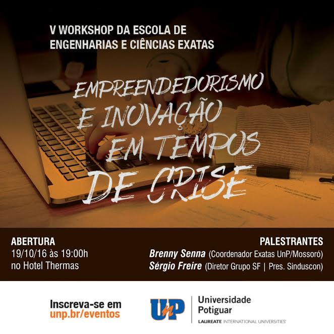 O engenheiro civil Sérgio Freire, Presidente do SINDUSCON Mossoró e Diretor do Grupo SF, será o palestrante na abertura do V Workshop da Escola de Engenharias e Ciências Exatas de Mossoró, que acontece nesta quarta-feira (19), às 19h, no Hotel Themas. O evento que segue no campus da UnP em Mossoró até o dia 21, com o tema “Empreendedorismo e Inovação em Tempos de Crise”, será aberto para alunos, pesquisadores e o público em geral. O workshop visa mostrar os diferenciais e a importância de o profissional estar sempre qualificado para o ingresso no mercado de trabalho e nos caminhos do empreendedorismo.