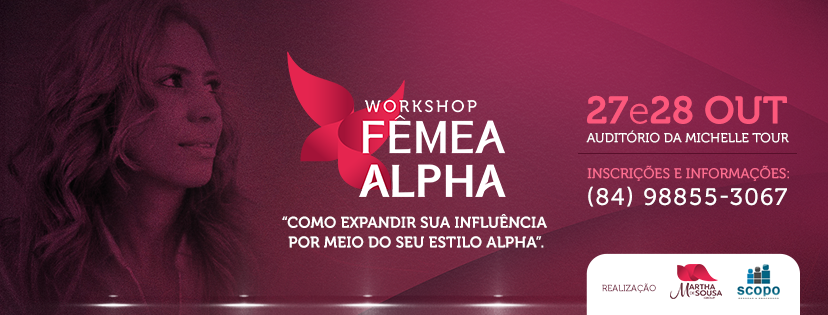 Equilíbrio, foco, personalidade, determinação, força, confiança e busca incessante pelo conhecimento. Essas características, que fazem parte da Fêmea Alpha, são também palavras-chaves para o sucesso. E é por isso que a facilitadora Martha de Sousa ministra nesta semana, nos dias 27 e 28, o Workshop Fêmea Alpha – “Como expandir sua influência por meio do seu estilo Alpha”.