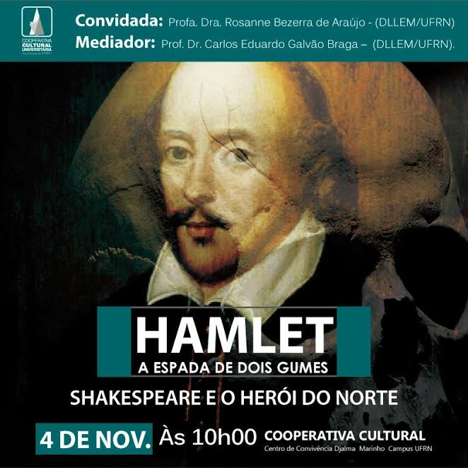 Com mediação do professor do Departamento de Línguas e Literaturas Estrangeiras da UFRN, Carlos Braga, conselheiro da Cooperativa Cultral, a professora do mesmo departamento Rosanne Araújo, fará a palestra: Hamlet – A Espada de dois gumes (Shakespeare e o Herói do Norte), a partir das 10h. Entrada gratuita. “A escolha do nome dela se deu porque Rosanne conhece muito bem a literatura inglesa, além de Shakespeare, ela também é estudiosa de Beckett”, explica ele.
