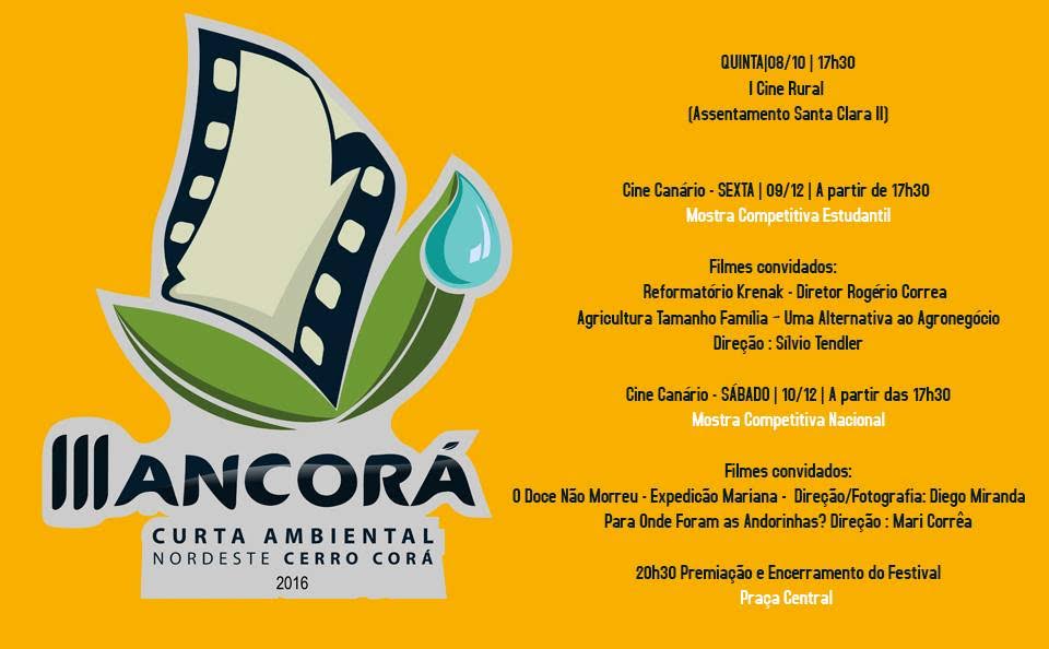 A terceira edição do Festival ANCORÁ – Curta Ambiental Nordeste teve início ontem (08), sob a temática “Biomas Brasileiros”, mas segue até o sábado (10), com competições de mostras audiovisuais, muito cinema, pipoca e algodão doce no município de Cerro Corá.