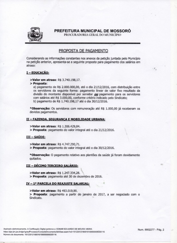 Em sua decisão, o juiz argumenta que o bloqueio impedia “qualquer medida administrativa tendente a pagar o salário dos servidores em atraso, bem assim os prestadores de serviços públicos essenciais, em reflexo direto na população”. Além do pedido de desbloqueio, a PMM encaminhou à Justiça uma proposta onde informa datas e forma de pagamento dos servidores.