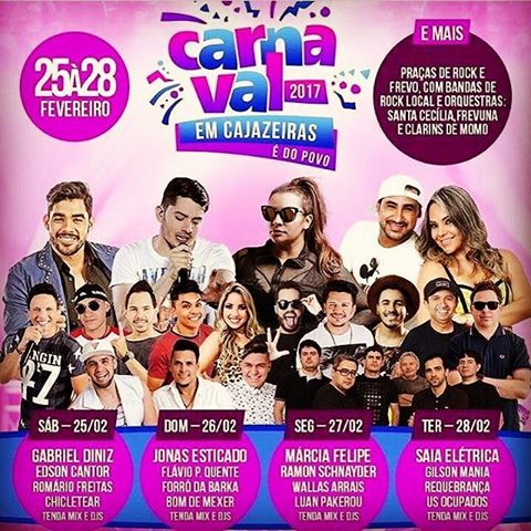 O Carnaval de Cajazeiras é um dos maiores do Nordeste e todos os anos atrai foliões de vários locais do estado e da região. No ano passado, a folia foi realizada no início de fevereiro e contou com várias atrações musicais badaladas, como a banda Aviões do Forró, Mano Walter e a dupla Simone e Simaria.