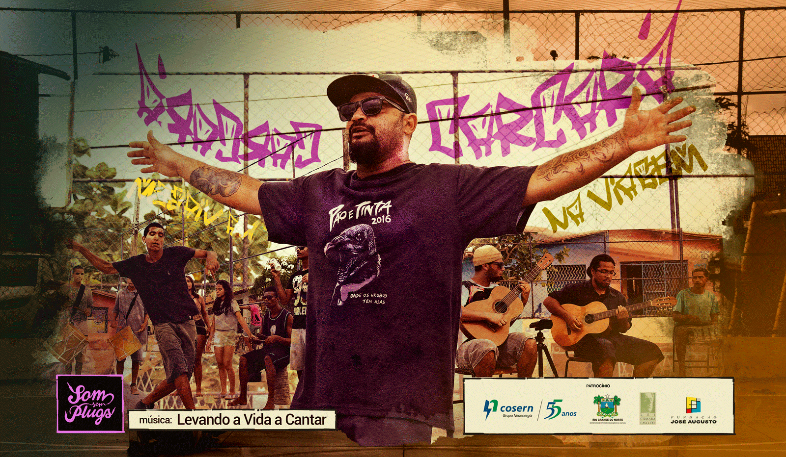 O material pode ser conferido na Fanpage, no site www.somsemplugs.com.br ou no canal do YouTube do Som sem Plugs. Aperte o play e curta essa nova produção. O Som Sem Plugs está na temporada 2016-2017 e conta com o patrocínio da Cosern grupo Neoenergia através da Fundação José Augusto e a Lei Câmara Cascudo de Incentivo à Cultura do Governo do Estado do Rio Grande do Norte e apoio da BetaPro Foto & Vídeo, Camaleãoart, Social Soma, Original Marketing & Eventos e G7 Comunicação.