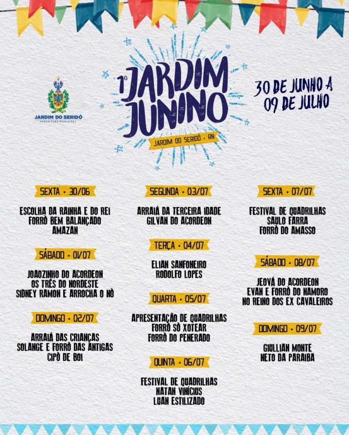 A cidade de Jardim do Seridó vai realizar do dia 30 de junho a 09 de julho deste ano a maior e melhor festa de São João da região do Seridó.