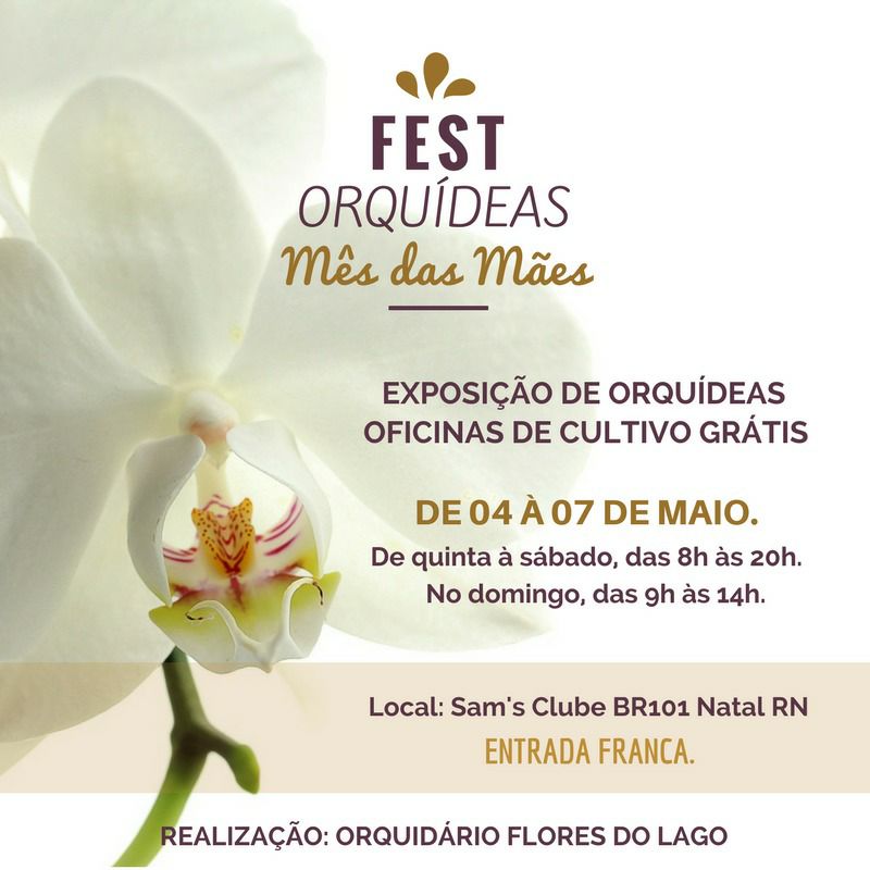 Exposição também oferece oficinas gratuitas sobre cultivo. Mesmo diante de um mercado tão cheio de opções de presentes, as orquídeas continuam liderando e encantando quando o assunto é o Dia das Mães. Para auxiliar nesta busca, antecipadamente, a partir do próximo dia 04 a 07 de maio, o Fest Orquídeas do orquidário Flores do Lago, estará com exposição e venda de várias espécies de orquídeas no Sam’s Club, localizado na BR – 101, das 8h às 20h.