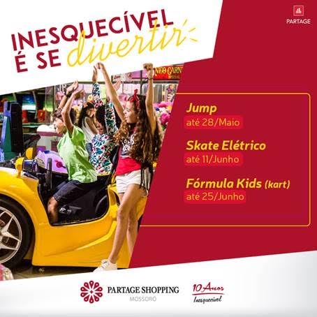 O Partage Shopping Mossoró é um centro de compras e lazer consolidado na região, além de ser uma referência em entretenimento para toda família. O empreendimento busca proporcionar atrações e novidades que tornem a experiência de ir ao shopping ainda mais prazerosa. Neste mês, o shopping recebe novidades, como o “Jump”, um espaço especial que caiu no gosto das crianças, que ficará aberto até o dia 28 de maio. Já o Skate Elétrico, uma febre mundial, chega ao shopping como uma opção diferenciada, e em menos de uma semana, caiu no gosto de mais de XXX pessoas.