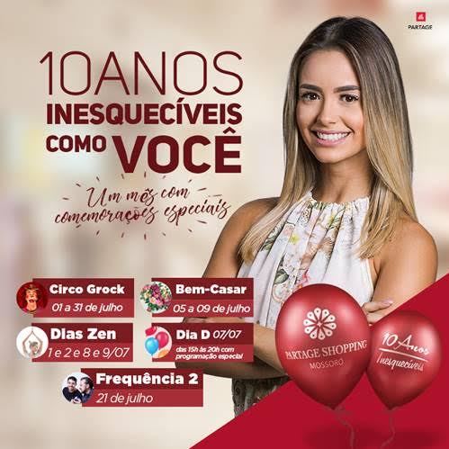 Há 10 anos, o Partage Shopping Mossoró se dedica a entregar a cidade o melhor serviço e estrutura, se tornando o centro de compras e entretenimento da cidade. Para comemorar o aniversário, o empreendimento preparou um mês de atrações especiais.