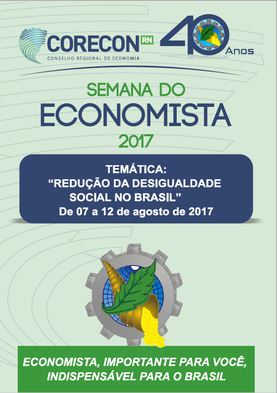 O Conselho Regional de Economia do Rio Grande do Norte – CORECON/RN promove na capital potiguar, a “Semana do Economista 2017” de 07 a 12 deste mês, com a temática “Redução da Desigualdade Social no Brasil”. O evento faz parte da proposta do Conselho em valorizar a profissão e o profissional responsável pelo desenvolvimento socioeconômico do país. Para celebrar o ‘Dia do Economista’ (13 de Agosto), o CORECON montou uma programação voltada aos economistas e também à população.