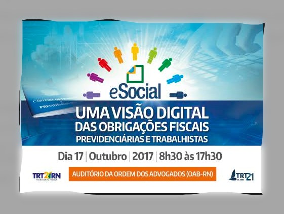 Representantes de órgãos públicos federais, estaduais e municipais de todo o Rio Grande do Norte e de vários estados já confirmaram inscrição no curso “eSocial: Uma visão digital das obrigações fiscais, previdenciárias e trabalhistas”, promovido pelo Tribunal Regional do Trabalho da 21ª Região (TRT-RN). O curso vai reunir em Natal, no próximo dia 17 de outubro, entre outros especialistas, Eduardo Tanaka (auditor da Receita Federal de Florianópolis-SC), um dos criadores do eSocial, que fará duas exposições.Pela manhã, ele explicará a concepção do sistema e seu estágio atual e, à tarde, falará sobre EFD REINF – retenções de pagamentos diversos e DIRF.