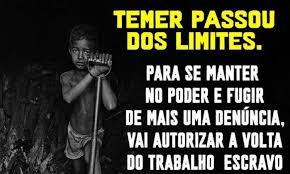 Após pedir revogação da portaria que flexibiliza o trabalho escravo e dificulta o acesso à “lista suja” das empresas, o Ministério Público do Trabalho (MPT) lançou, ontem, campanha nacional no Facebook e no Twitter, para pressionar o Governo Michel Temer. Condição degradante, jornada exaustiva, trabalho forçado e servidão por dívida, cada uma das características descritas no artigo 149 do Código Penal, “é trabalho escravo, sim! ” – diz a campanha.