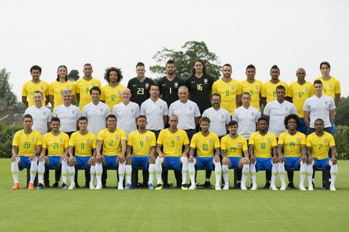 A seleção brasileira já tem a foto oficial para a Copa do Mundo. Já com a numeração que vão utilizar no Mundial da Rússia, os 23 jogadores aparecem acompanhados dos 10 integrantes da comissão técnica. O registro foi feito após o treino desta sexta-feira, último dia da delegação em Londres após quase duas semanas de preparação na Inglaterra. O grupo deixa a concentração por volta das 11h (de Brasília) e segue em seguida para Viena, onde enfrentará a Áustria em amistoso no próximo domingo.