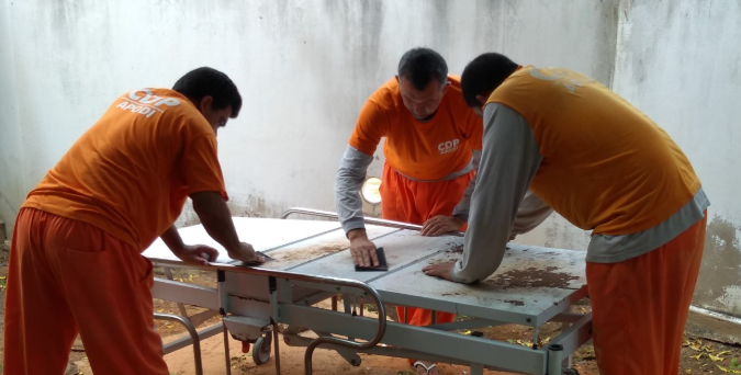 Detentos do Centro de Detenção Provisória de Apodi, estão realizando trabalhos de pintura das camas hospitalares do Hospital Regional Hélio Morais Marinho.