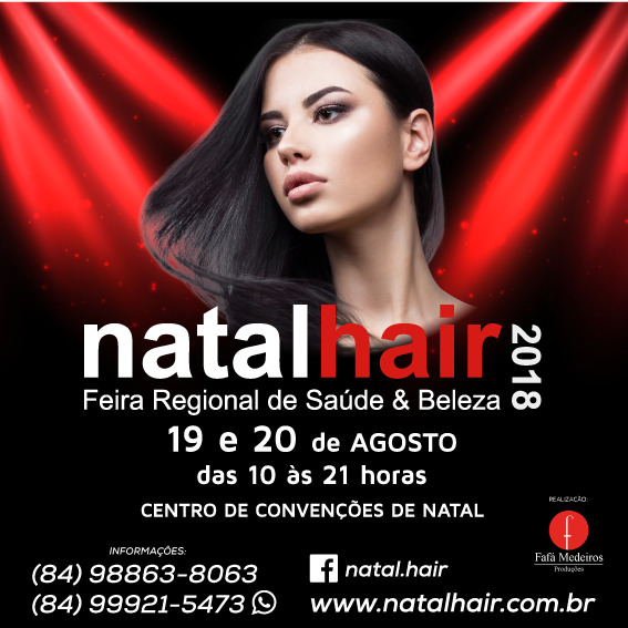 “Tudo de mais atualizado no segmento dos salões de beleza e clínica de estética”, promete a 18ª edição do Natal Hair – Feira Regional de Saúde & Beleza que acontece próximo final de semana, nos dias 19 e 20, no Centro de Convenções, com programação a partir das 10h e segue até às 21h.
