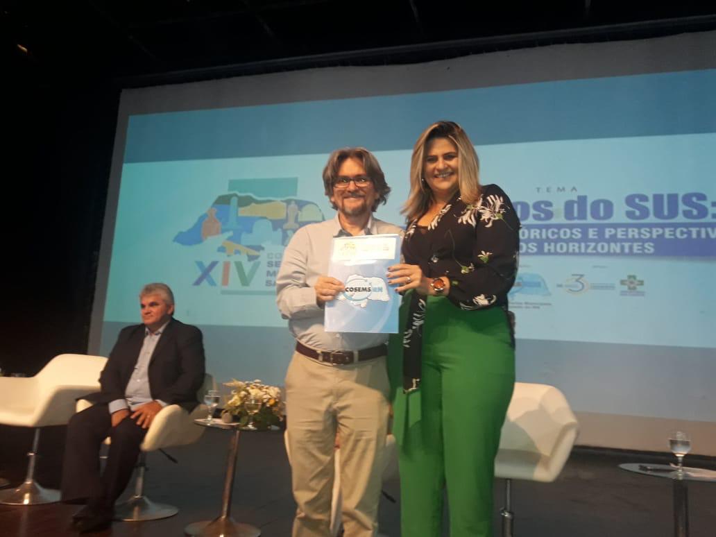 Um dos momentos mais importantes durante o XIV Congresso de Secretários Municipais de Saúde do Rio Grande do Norte, evento promovido entre os dias 20 e 22 de novembro, no Hotel Vila do Mar, em Natal, pelo Conselho de Secretarias Municipais de Saúde do RN (Cosems-RN) em parceria Conselho Nacional de Secretarias Municipais de Saúde (Conasems) e Ministério da Saúde (MS); foi a entrega da Carta de Natal 2018 [CONFIRA AQUI], nesta quinta, a Cipriano Maia, coordenador-geral do Núcleo de Estudos em Saúde Coletiva da Universidade Federal do Rio Grande do Norte (NESC/UFRN) e representante da equipe de transição da governadora eleita, Fátima Bezerra (PT), na área da saúde.
