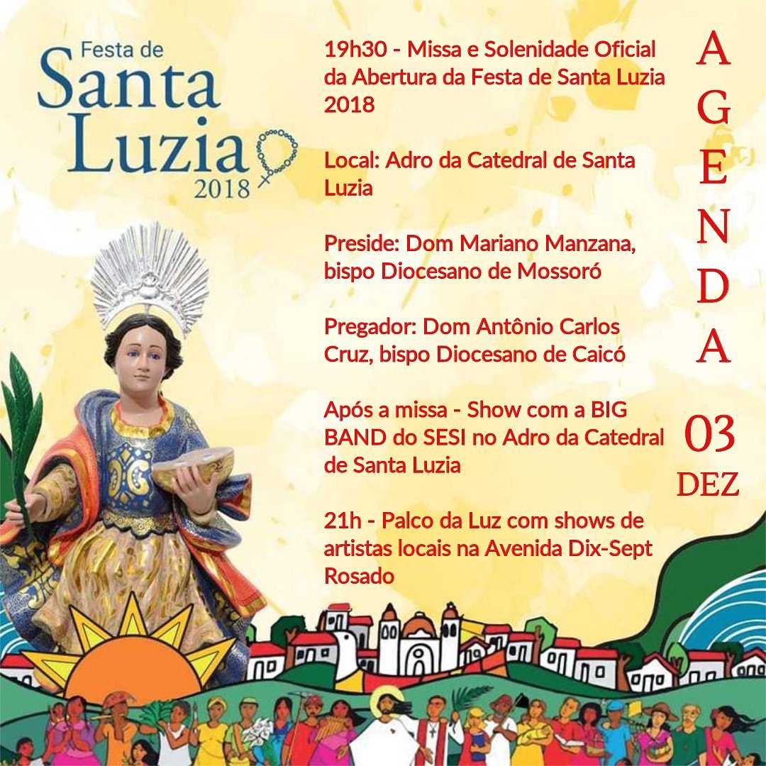 Após a missa de abertura a Big Band do Sesi fará uma apresentação no Adro em homenagem a Santa Luzia.