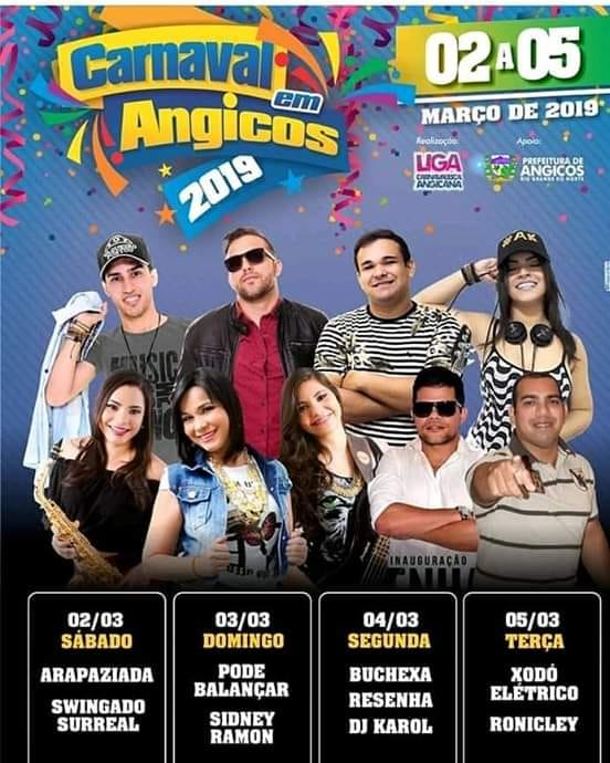 O RN com mais uma opção de festividade carnavalesca. Veja aqui programação do Carnaval em Angicos/RN 2019, de 02 a 05 de março em praça pública.