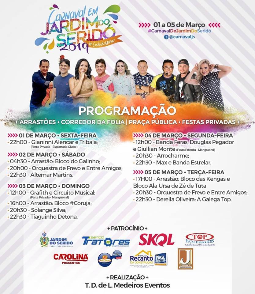 Confira a programação do Carnaval em Jardim do Seridó 2019.