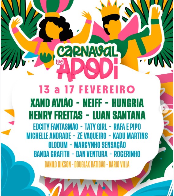 Com uma grade artística robusta e bem distribuída, o Carnaval de Apodi 2026 se consolida como um dos principais destinos carnavalescos do Rio Grande do Norte, reforçando a tradição e a importância cultural do evento para o município.