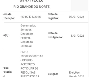 Registrada primeira pesquisa eleitoral no RN para as eleições 2026 já tem data para ser divulgada